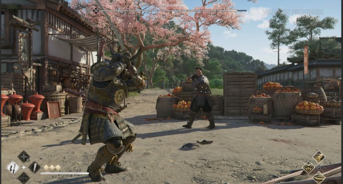 Además, esta ambientación no sólo de apoya en lo tradicional, sino que también se notan influencias del cine de acción más espectacular y tarantinesco en lugares como las poses y animaciones de los personajes, pero también en toques más rupturistas y atrevidos como la banda sonora, en la que de repente podemos escuchar canciones modernas mientras damos espadazos en la parte más alta de un tenshu. La dirección artística de Assassin’s Creed Shadows es más atrevida de lo que esperábamos y, aunque ambas partes parecen no hablarse demasiado ni su estilo es demasiado divergente, el conjunto queda bastante bien y le da mucha personalidad a la experiencia.